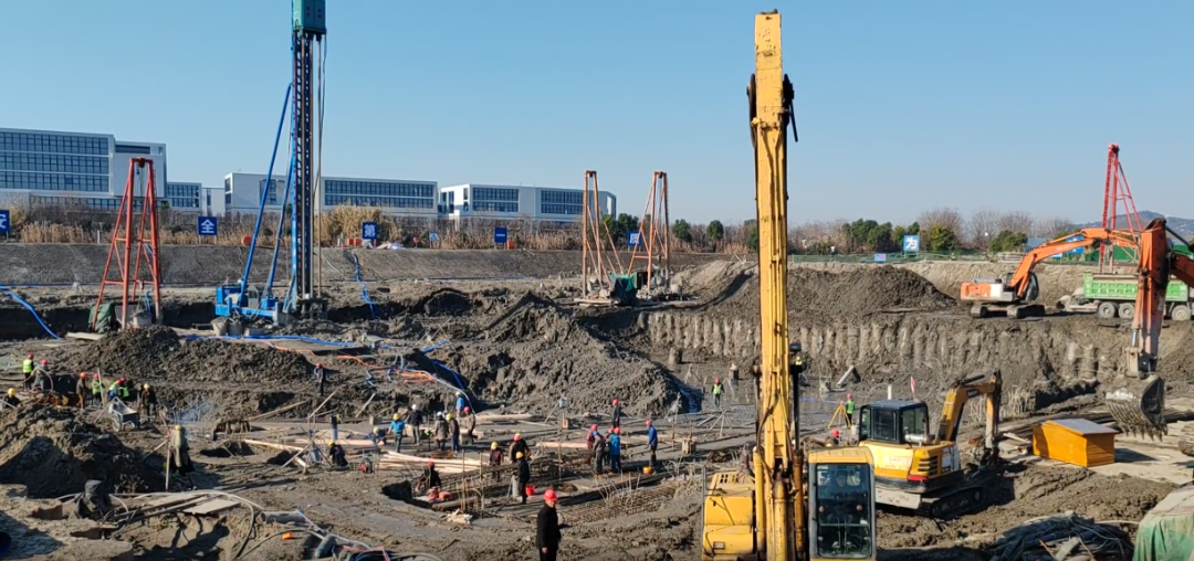 江河建设牵头承建的绍兴市上虞区东关片区涝区治理-五甲渡闸站建设工程,是虞绍平原东关片区防洪排涝的骨干工程,闸站基础深基坑支撑梁施工是保障后续基坑安全、推进主体工程建设的关键节点,直接影响项目的整体推进。春节前夕,工地依然干得热火朝天,为攻克这一重要施工节点,确保工程按计划推进,项目部紧急调集精兵强将组建攻坚小组,严格遵循“先撑后挖、分层开挖”的施工原则,抢时间、抓进度、保质量。