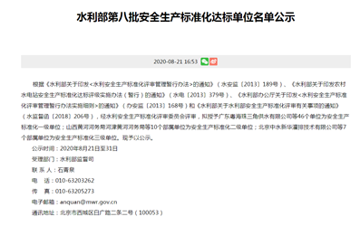 水利部第八批安全生产标准化达标单位名单公示
