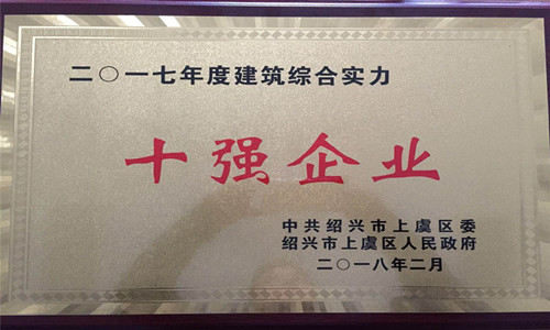 公司首次荣获上虞区“建筑综合实力十强企业“称号