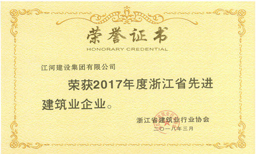 我公司再次荣获“2017年度浙江省先进建筑业企业”称号