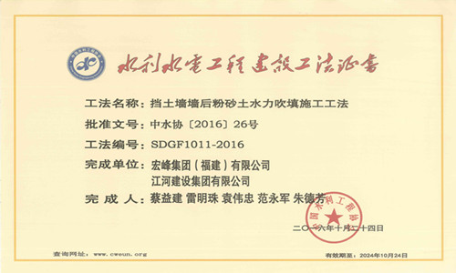 我公司一项工法荣获2016年度水利水电工程建设工法