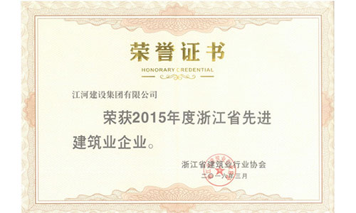 公司荣获“2015年度浙江省先进建筑业企业”称号