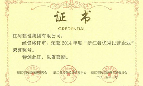 我公司荣获2014年度浙江省优秀民营企业荣誉称号