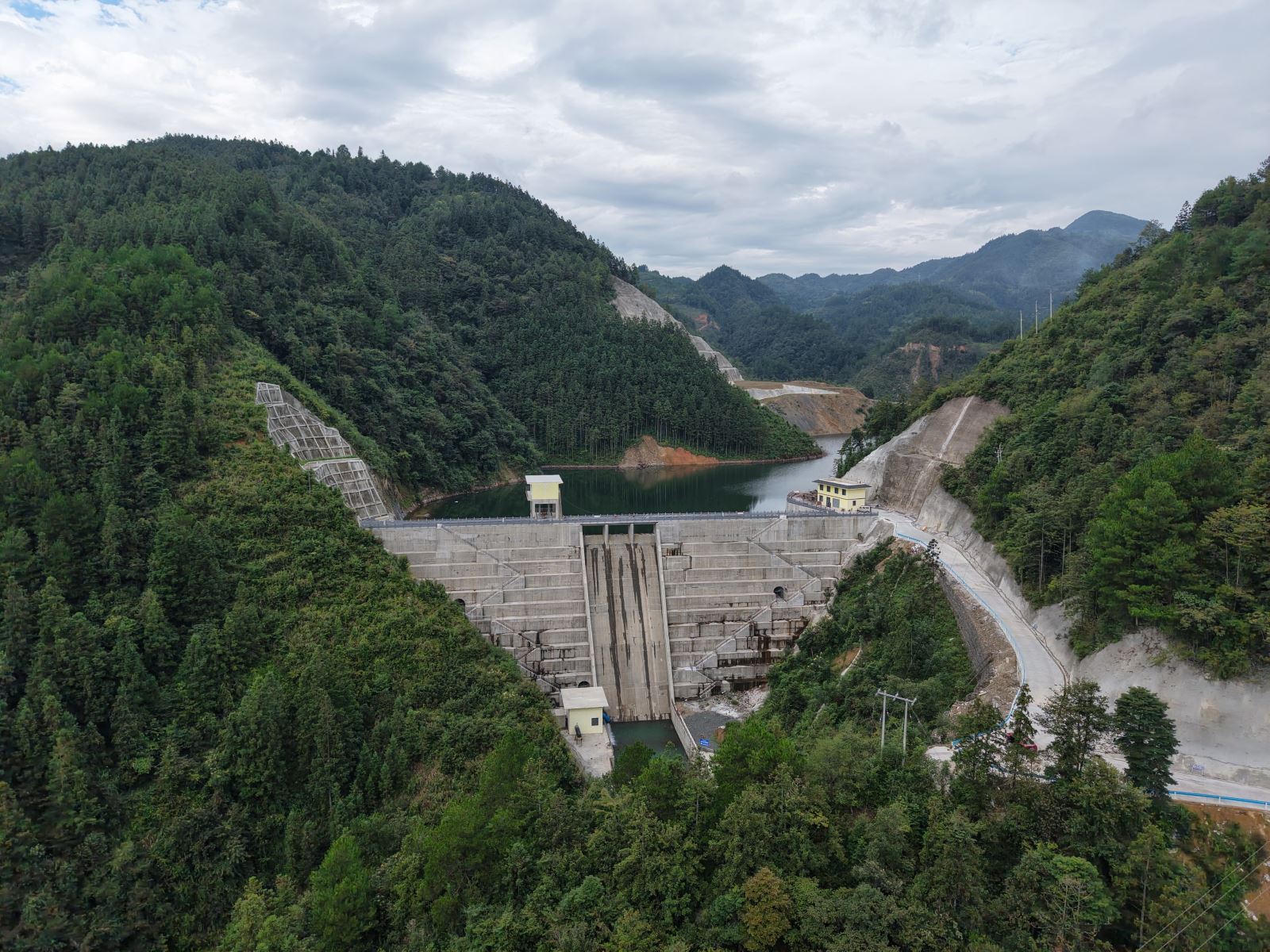 工程于2022年11月12日开工,2025年9月30日全面完工。参建各方克服了山区复杂地质、技术难题和工期压力。工程累计完成土石方开挖约12.35万立方米,浇筑混凝土约8.67万立方米,帷幕与固结灌浆近5000米,每一方混凝土、每一米灌浆都凝聚着建设者的汗水与智慧。
