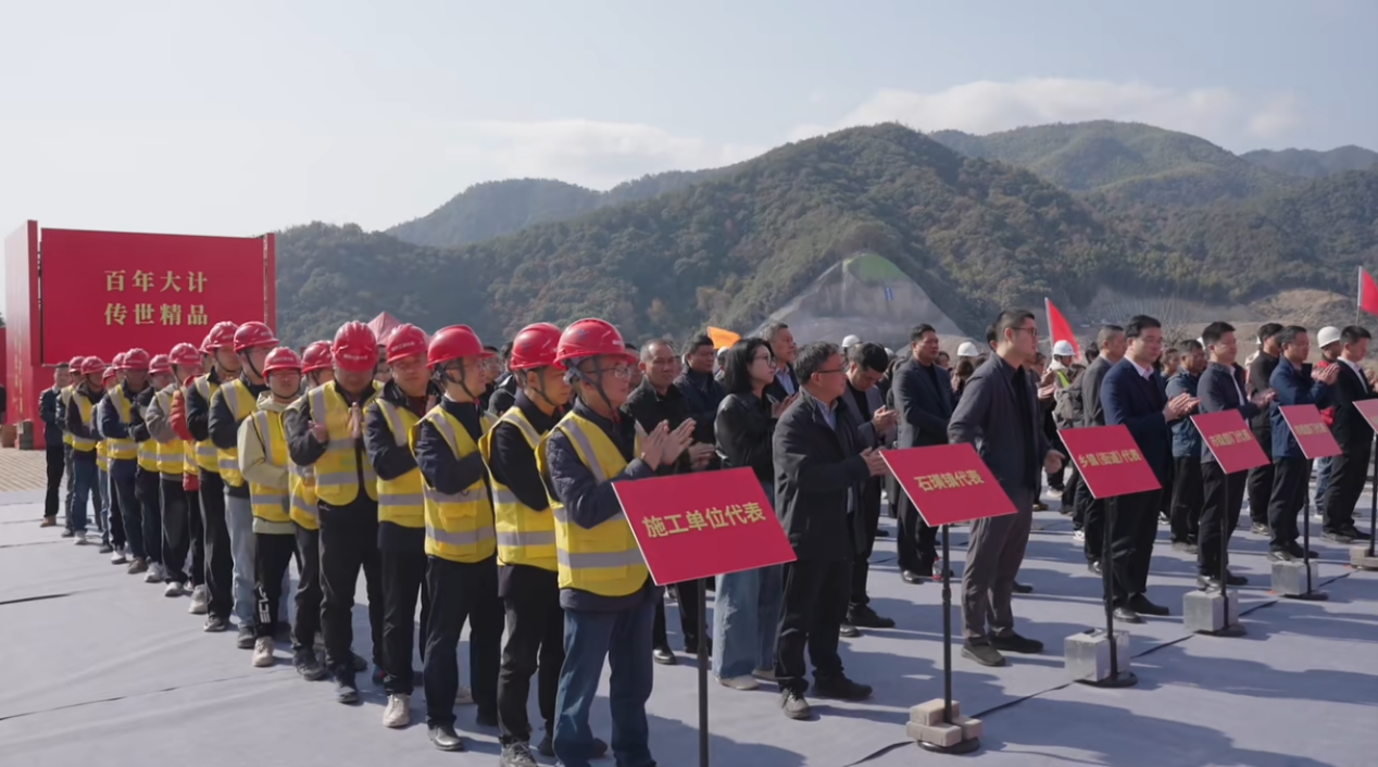 2025年12月10日,我司中标的嵊州市三溪水库工程举行截流暨大坝主体工程开工仪式。标志着这个省级“千项万亿”重大项目前期工作取得重大胜利,大坝主体正式进入施工阶段,绍兴市副市长罗延发、省水利厅二级巡视员宣伟丽、嵊州市委书记裘建勇,市长潘超英、绍兴市水利局局长等参加开工仪式,公司董事长袁伟忠也亲临现场。
